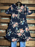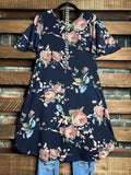 16-20 NAVY GARDEN TUNIC FLORAL PRINT---------SALE