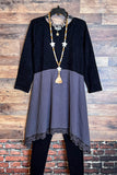 16-26 SIZE - EMPIRE WAIST DRESS TUNIC BLACK & GRAY-------SALE