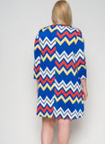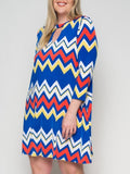 1X-2X-3X BLUE & CORAL RED CHEVRON PRINT DRESS------------SALE
