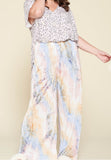 1X-3X SIZE -PLUS SIZE TIE DYE BLUE & PINK PLEATED WIDE PANTS --------- SALE