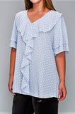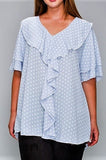 1X - CLASSIC & ROMANTIC POLKA DOT RUFFLE BLOUSE IN LIGHT BLUE----SALE