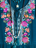 6-12 SIZE - DARLING FLORAL EMBROIDERED TOP IN TEAL--------SALE