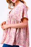 BEAUTIFUL TIMELESS FLORAL BABYDOLL TOP IN BLUSH ROSE--------SALE