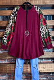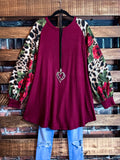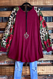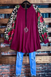 CAUGHT BY SURPRISE FLORAL FLEECE TUNIC IN BURGUNDY -----------SALE