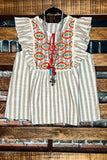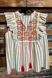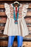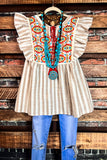 COUNTRY SOUL TAUPE & MULTI-COLOR BLOUSE---------SALE