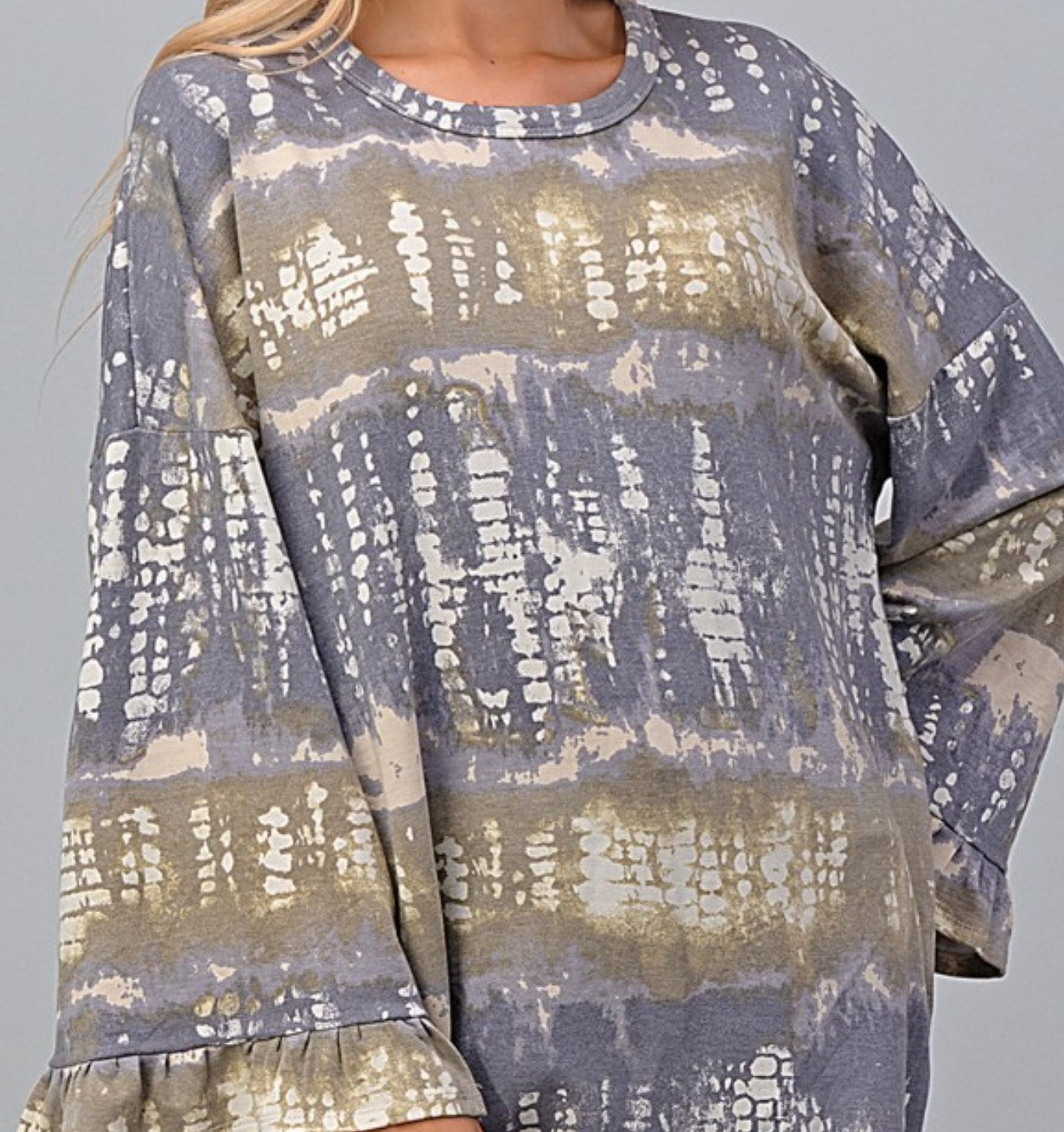FEELING FREE TIE DYE TUNIC 4X 5X 6X IN GRAY & OLIVE--------SALE