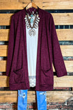 Keep Things Simple Pad Pockets Cardigan in Burgundy----------Sale