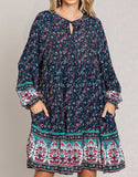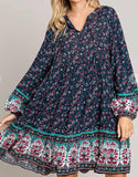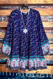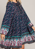 L-2X SIZE - BOHO HIPPIE SWING OVERSIZED DRESS IN NAVY ----------SALE