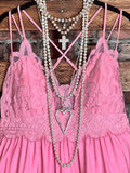 LACE BRALETTE TIERED CAMI TOP IN LIGHT PINK-----SALE
