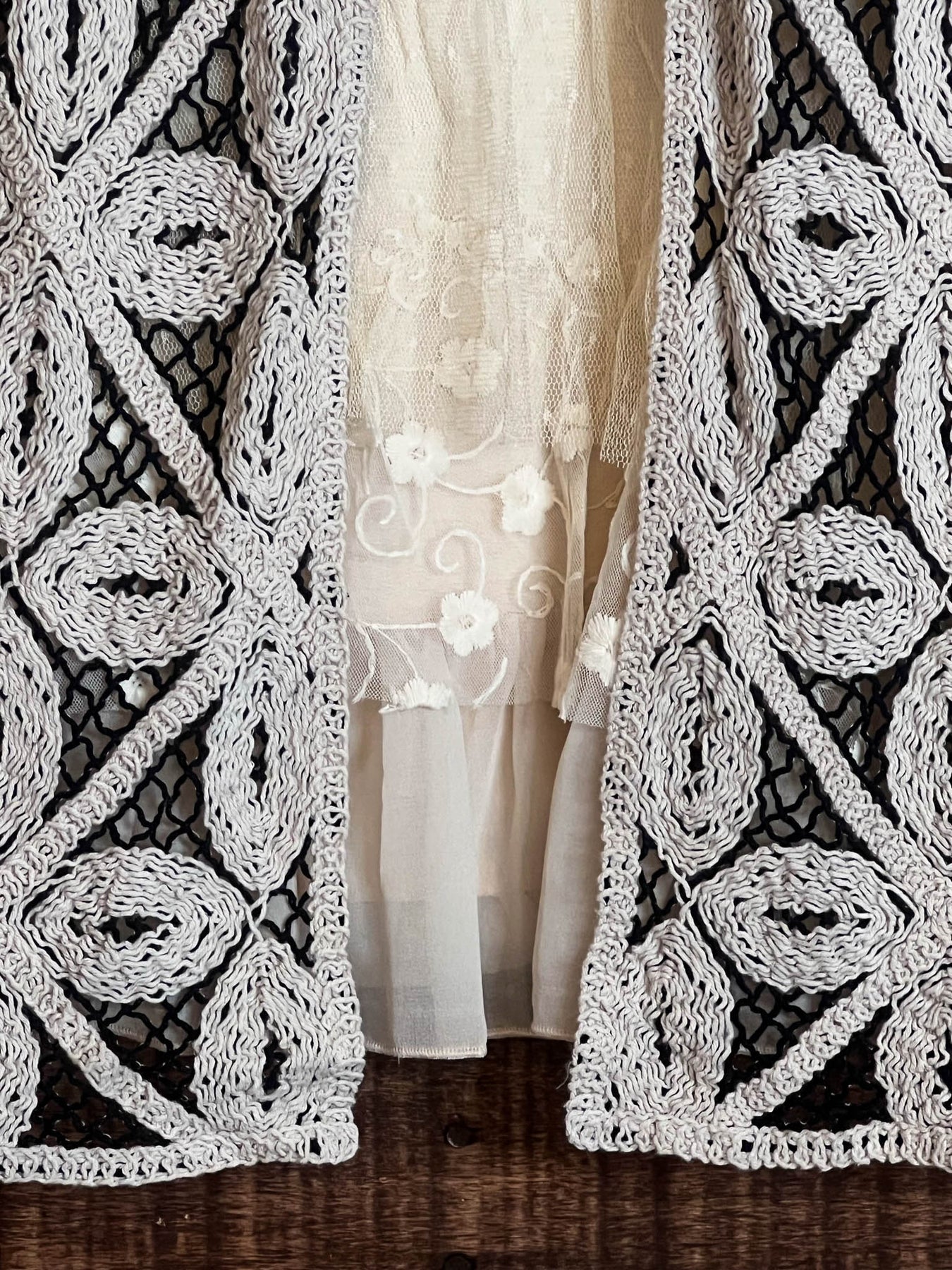 Magic In My Heart 100% Cotton Artisan Cardigan Jacket Beige/Black-------Sale