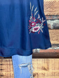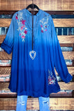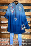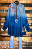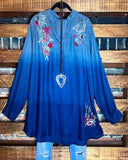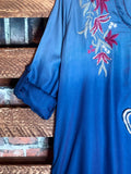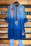 PEASANT GAUZE EMBROIDERED SHIRT IN BLUE TONES---------SALE