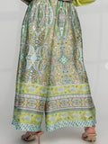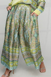 SATIN PRINTED WIDE LEGS PLUS SIZE PANTS IN GREEN & MULTI -----SALE