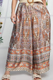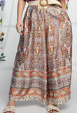SEA BREEZE SATIN PRINTED WIDE LEGS PLUS SIZE PANTS IN CORAL & MULTI-----SALE
