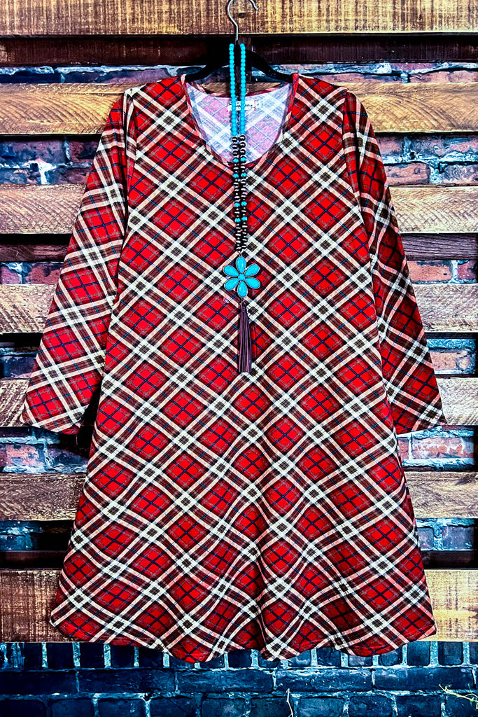WALK THE LINE PLAID SWEATER DRESS LONG SLEEVE IN RED---------------sale