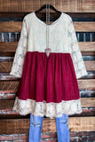 You and Me Could Write a Good Romance Lace Dress in Beige & Crimson-----------SALE