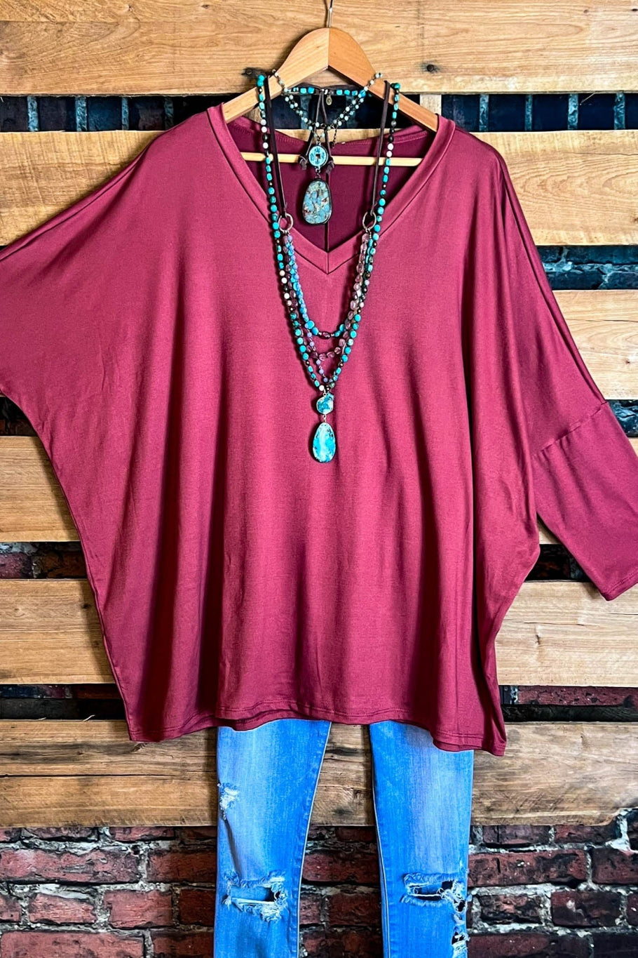 SIMPLE IS BETTER CASUAL T-SHIRT TUNIC MARSALA