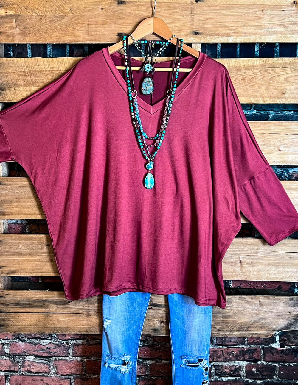 SIMPLE IS BETTER CASUAL T-SHIRT TUNIC IN BURGUNDY