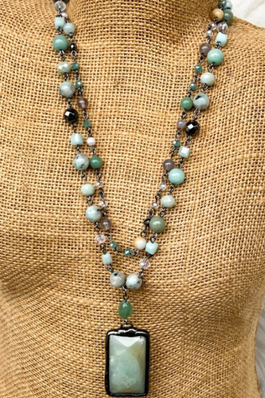 Rustic Natural Stone Amazonite Positive Energy Necklace
