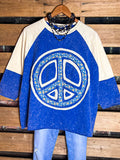 • PEACE & LOVE SOUL 100% COTTON T-SWEATSHIRT IN BLUE